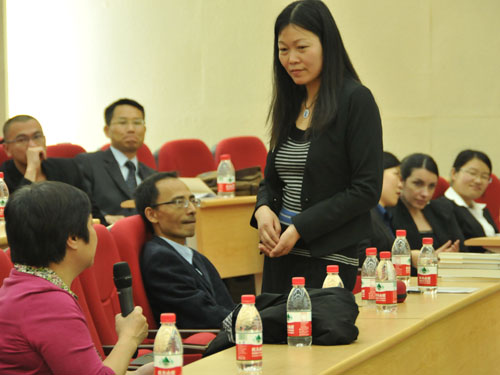 黄荭老师走下台,与老师和同学们进行交流问答