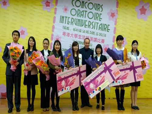 八位选手演讲各具特色,或声情并茂或深入浅出,引人深思。听众们沉醉于精彩的演讲中,现场不时爆发阵阵热烈的掌声。经评议,中山大学的谢静怡同学荣获第一名,她以自己亲手画的漫画人物,形象生动地展现了政府应在社会公平、立法、医疗、环境、教育等方面制定好相关措施来吸引珠三角地区的应届毕业生留在本地工作。第二名是由IFCEN中法核工程与技术学院的姚兰梦琦同学获得,她强调珠三角中的大城市在发展经济的同时要注重文化的保护以及传承。第三名是由香港中文大学的谢知秋同学获得,她主要讲述了关于岛屿的故事,强调留岛老人对外出工作的后代提供了心灵的港湾。伟德国际betvlctor1946的法语研究生也就珠三角地区在快速发展经济的同时需注意环境生态问题展开演讲。