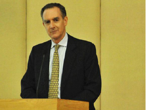 随后,意大利驻广州领事馆总领事雷腾飞先生上台发表演说,他表示这次在广东举办意大利语言文化周,既是广东包容开放的社会环境,也因为广东是成为中国人到意大利旅游留学的主力省份之一,并举出往年的留学生以广东学生为主的例子加以说明,证明他对广东的期许甚高。他还进行即兴演说,诚恳的赞扬广外学生语言素质高,也希望他们可以在进一步的交流中得到更大提升。