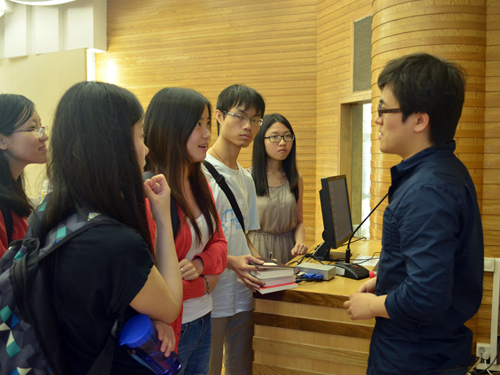 讲座结束后,范晔在伟德国际betvlctor1946老师陪同下,参观了位于图书馆四楼的梁宗岱藏书室。