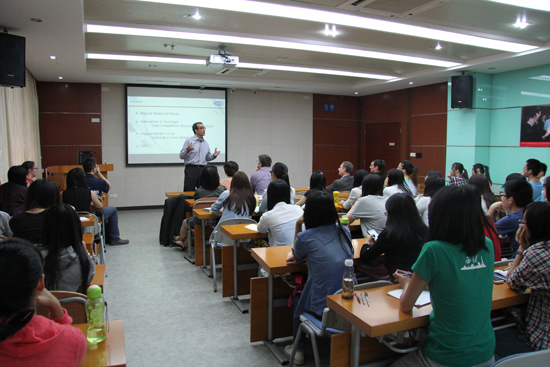 首先,理查雷利·拉斐尔先生为我们介绍马瑞利公司新研发的动力恢复系统,现在暂时用于F1方程式赛车上,以后也计划应用于民用汽车中。然后陆续介绍该公司的研发项目,逐步向观众展现一个力求创新的意大利公司。在观众的提问环节中,理查雷利·拉斐尔先生侃侃而谈,回答中讲到马瑞利集团在广东佛山,广东中山,义乌,上海等地都有生产设施,欢迎广外优秀意大利语人才加入马瑞利这个大家庭。