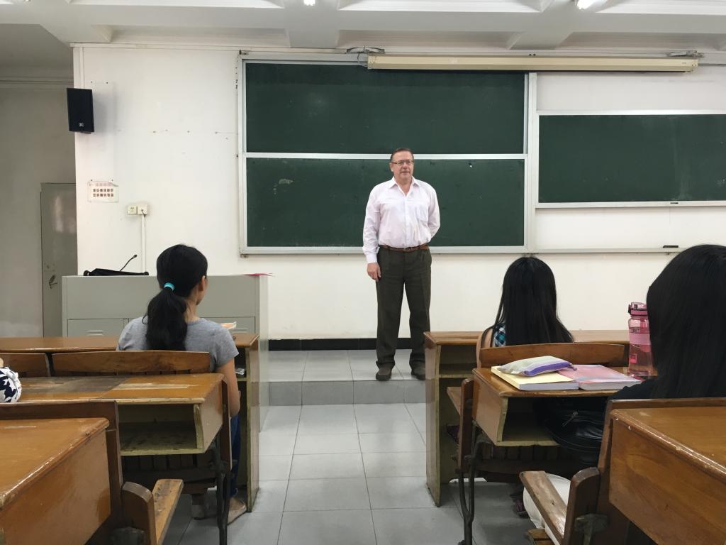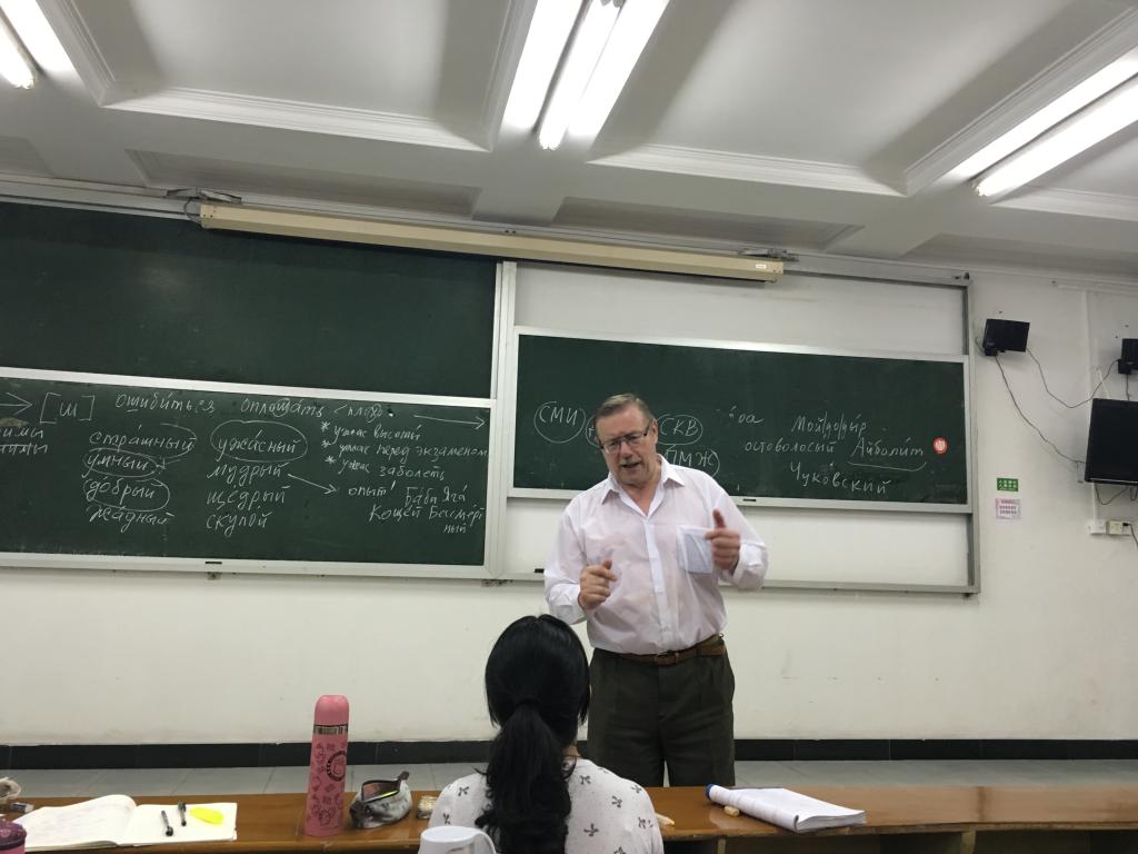 本网讯 11月17日下午,白俄罗斯国立大学理论语言学和斯拉夫语言学系教授鲍里斯·诺尔曼应邀来伟德国际betvlctor1946为俄语系学生作了俄罗斯语言与文化的讲座。广外俄语系外籍教授扎里·沙拉符京诺夫和莫斯科大学教授斯维特兰娜·捷尔米娜索娃出席了讲座。