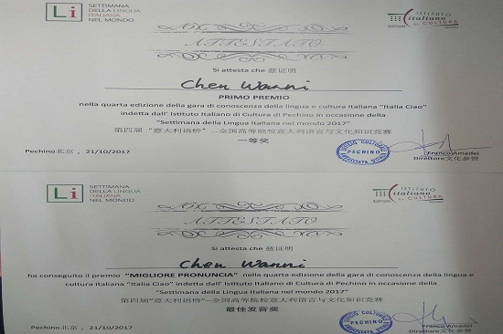 本网讯 10月21日下午,由意大利驻华使馆文化处主办的第四届“意大利语桥”——全国高等院校意大利语言与文化知识竞赛在北京举行。伟德国际betvlctor1946伟德国际betvlctor1946意大利语系学生陈婉霓夺得一等奖,并获最佳发音奖。