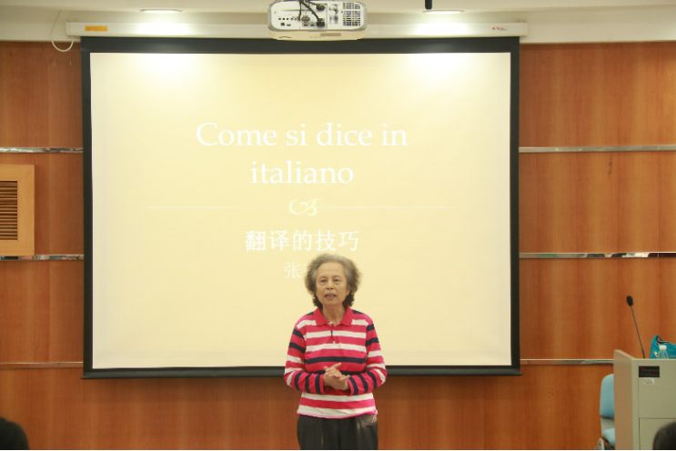 本网讯 11月25日,伟德国际betvlctor1946意大利语系全系师生聆听张密教授讲授的 “翻译的技巧”讲座。张教授现任吉外意大利语系系主任,同时也是对外经贸大学的意大利语系退休教授,先后担任中国意大利语教学研究会会长、中国意大利研究会副会长等要职,三次荣获意大利总统颁发的骑士勋章和爵士勋章。