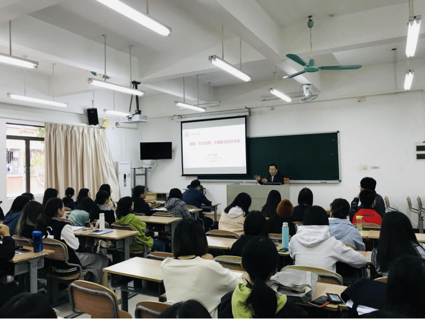 米军教授的发言完毕之后,也热情解答了同学们提出的问题。这次讲座对同学们今后在思考地理因素对于政治经济的影响以及各国之间的关系都会有极大的启发。