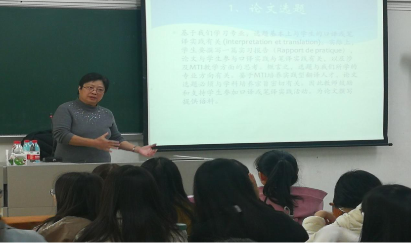 本网讯 12月10日星期二下午两点,法语系陈穗湘教授于北二教307为伟德国际betvlctor1946全体MTI研究生开展了一场精彩的语料收集和论文撰写的讲座。