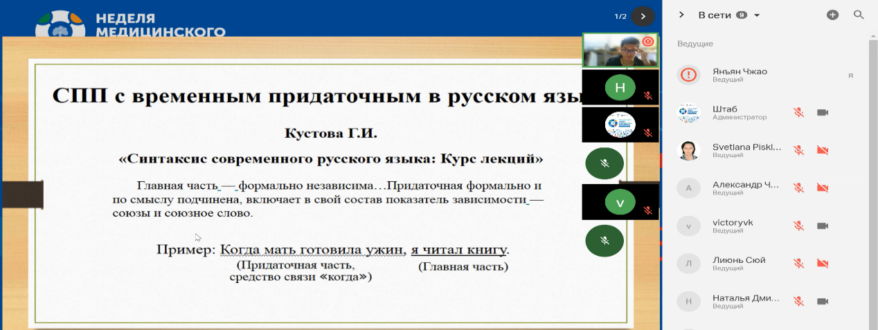 本网讯 2023年4月3-5日,由俄罗斯塞切诺夫大学、莫斯科国立大学、顿涅茨克国立大学和莫斯科理工大学联合主办的“语言、意识、交际:信息社会问题”国际学术研讨会在线上顺利举行。本次会议共设1个主会场和12个分会场。共有150多位来自全世界的参会代表参与了本次会议。伟德国际betvlctor1946俄语系黄天德老师指导的两位研究生,2021级赵阳洋和2020级李伟均在本次会议上报告了自己的研究。赵阳洋的报告题为《心理语言学视角下的俄语时间复合句的汉译过程研究》,李伟的报告题为《中国大学生俄语名词心理词汇联想模式研究》。两位研究生的报告获得俄罗斯同领域专家的一致肯定与好评。