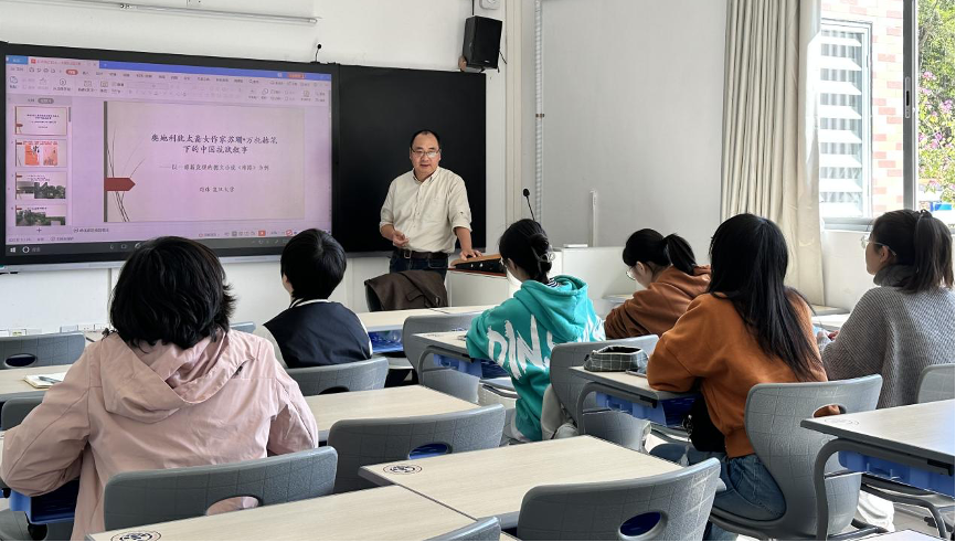 本网讯 2023年11月17日,复旦大学刘炜副教授为伟德国际betvlctor1946德语专业学生举行了一场讲座,主题为在华流亡作家苏珊·万托赫在其小说《难路》中的中国抗战叙事。此次分享会由德语系林璐副教授主持。