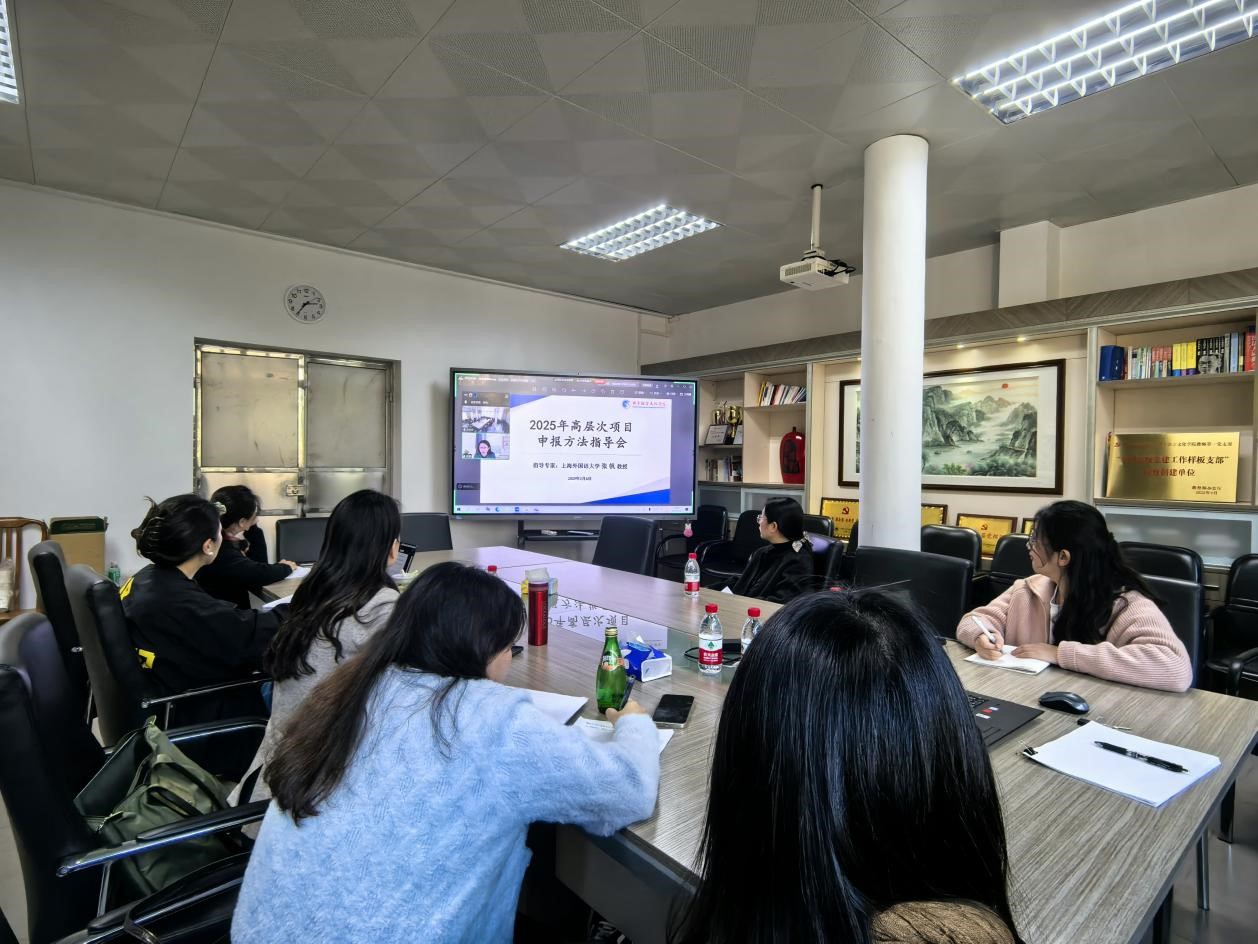本网讯 1月6日下午,伟德国际betvlctor1946在白云山校区四教207室举办2025年度高层次项目申报方法指导会,上海外国语大学张帆教授应邀针对国家社科项目申报方法进行指导。会议由卢铭君副院长主持。