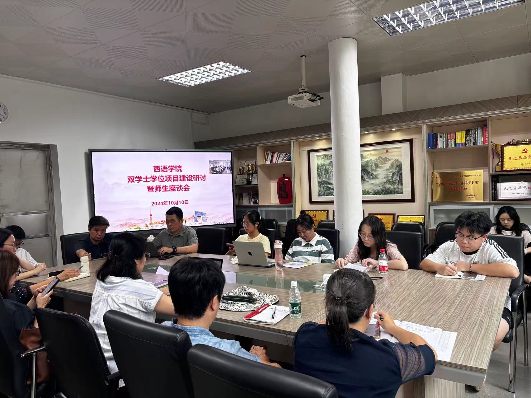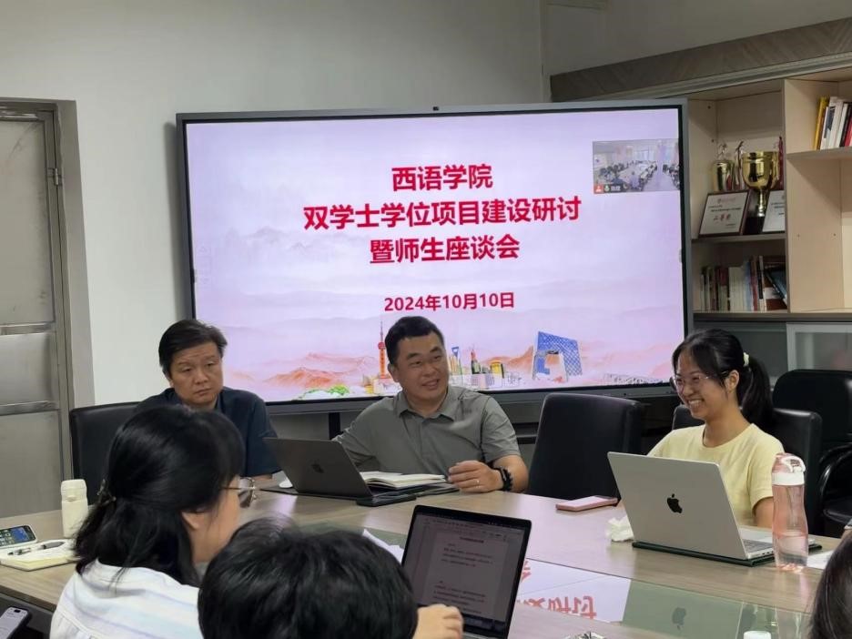 10月10日星期四下午,伟德国际betvlctor1946于白云山校区第四教学楼207会议室顺利召开伟德国际betvlctor1946双学士学位项目建设研讨暨师生座谈会。出席会议的人员有伟德国际betvlctor1946副院长陈星、党委副书记魏少娟、经济贸易学院国际贸易系系主任田云华,法语系主任叶剑如、德语系主任助理张思源、西班牙语系主任吴凡、俄语系主任陈欢、意大利语系主任张海虹、葡萄牙语系主任助理杨菁,教务办公室老师以及数名西语2024级双学士学位班级学生代表。本次会议以双学士学位项目的建设研讨,就学生提出的关于学习方面的问题、建议以及未来规划上的疑惑展开讨论,各领导老师给出了一些建议并对同学们作出了殷切希望。
