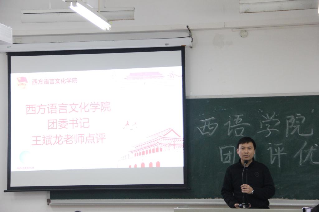 最后,团委书记王斌龙老师就本次评优大会进行了发言,他向同学们提出了要结合自己的专业,做出具有伟德国际betvlctor1946特色的团日活动的建议,如邀请本校留学生一起参加活动,参观红色景点时要注意发掘中国革命与小语种对象国之间的历史联系等。