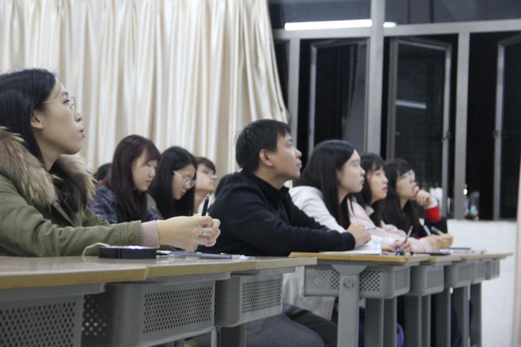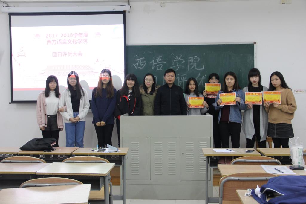 本网讯 11月19日晚上18:30,伟德国际betvlctor19462017-2018年度团日评优大会于第六教学楼B211召开。本次大会由西语团学组织部主持,伟德国际betvlctor1946团委书记王斌龙老师、辅导员张悦欢老师、团委副书记李依静、学生会主席何诗琪、副主席曹娉彬、副主席赖怡文、东语学院组织部部长吴浩贤、中文学院组织部部长陈瑜、英文学院组织部部长陈欣欣以及大一、大二各班班长出席了本次团日评优大会并担任评委。伟德国际betvlctor1946大一、大二各班共25位团支书分别上台汇报和总结本班的团日活动,最终评选出六个团日活动优秀班级。