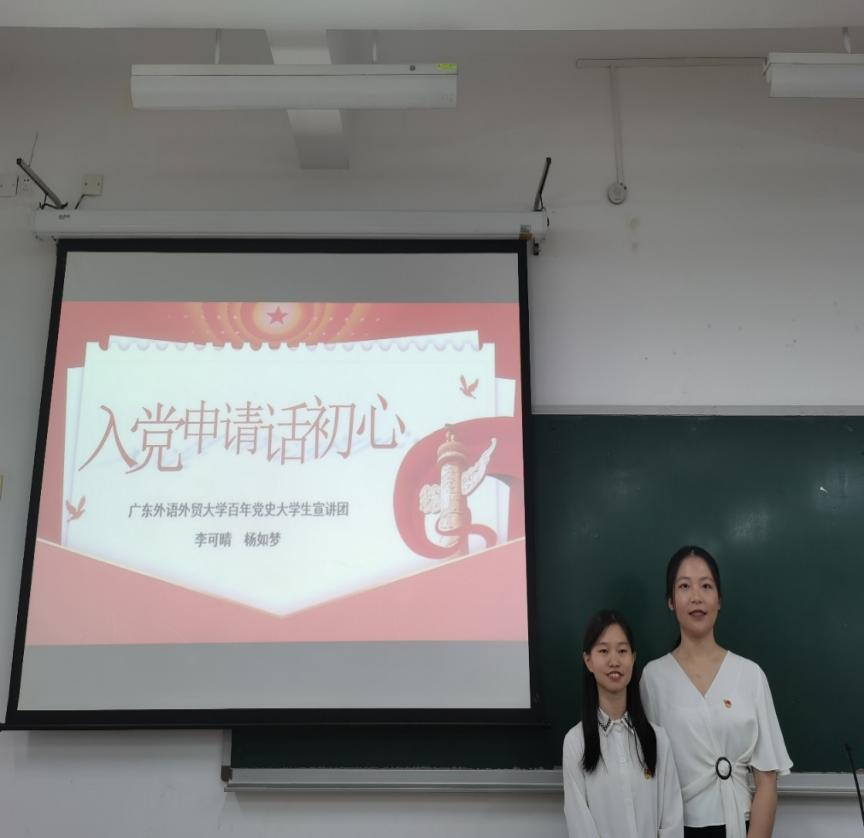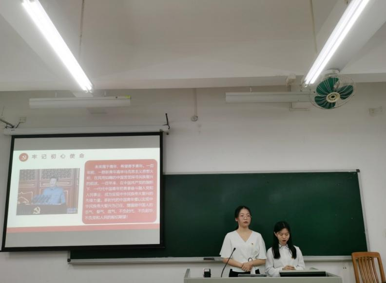 2021年10月28日下午15:40,伟德国际betvlctor1946邀请“百年党史”大学生宣讲团成员、国关学院李可晴和法学院杨如梦为在六教B208为学院发展对象和积极分子开展题为“入党申请话初心”的专题党课,共计70人参与。