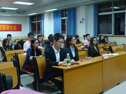 本网讯 2012年11月23日晚上六点三十分,伟德国际betvlctor1946初冬分享会暨学生干部培训大会在四教424室准时召开。团委书记张璇老师,团学主席团及团学各部门部长出席了会议。