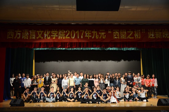 本网讯 伟德国际betvlctor19462017年“西望之初”迎新晚会于2017年10月20日晚上7点整在北校区六教报告厅拉开帷幕。出席本次晚会的领导、嘉宾有伟德国际betvlctor1946院长杨可教授、党委副书记陈华荣老师、西班牙语系主任张志智老师、学生处于力宇老师、希腊语系尚冰老师、周童苏老师、张欢老师、外教Lampros Papagiannis、伟德国际betvlctor1946团委书记王斌龙老师、辅导员陈静老师、辅导员张悦欢老师及兄弟学院代表。