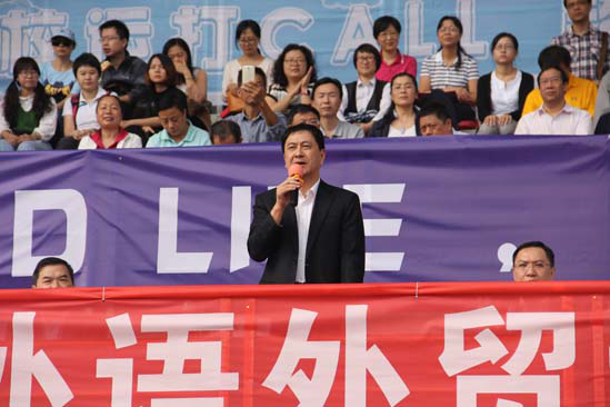 本网讯 2017年11月17日上午八点半,温暖的阳光洒在广外南校区的体育场上,一年一度的校运会即将拉开帷幕。在运动员入场仪式结束后,校党委书记、校长隋广军宣布校运会开幕,焦方太副校长致开幕词。出席本次开幕式的还有刘海春副校长及机关部处、教学教辅单位的负责人。开幕式上,各学院的表演别具一格,学生和教职工们精神抖擞,运动场上充满青春的气息。来自南北两校区的800多名运动健儿将在接下来的两天比赛中奋力拼搏,为各自的学院争光。