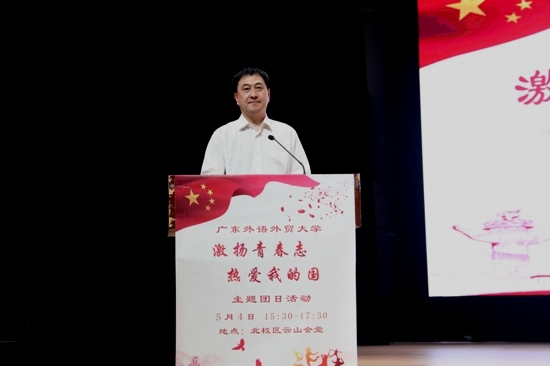 接下来,隋广军书记、校长发表了讲话。他谈到了弘扬五四精神、深入培育和践行社会主义核心价值观的重要性,并鼓励当代青年不懈拼搏、努力奋斗,为建设中国特色社会主义奉献出一份力量。