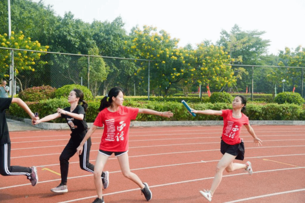 紧接着,女子4x100接力决赛与男子4x100接力决赛开始。陆盈斐、罗洋、邱瑜桑和周庚妮代表伟德国际betvlctor1946参加女子4x100接力决赛,黄灏天、谭耀辉、黄佳信和陈富代表伟德国际betvlctor1946参加男子4x100决赛。枪声一响,田径场上你追我赶,观众席上鼓乐齐鸣,大家都为这精彩绝伦的比赛欢呼呐喊。西语健儿们也不甘落后,用尽全力,在接住木棒的那一刻,像一匹匹奔腾的马,向下一个目标极速前进。一根小小的木棒,连接的是团结和友爱,传递的是勇气和力量,演绎的是奋斗和拼搏。女子组获得了单组第一的佳绩,场上再次掌声雷动。
