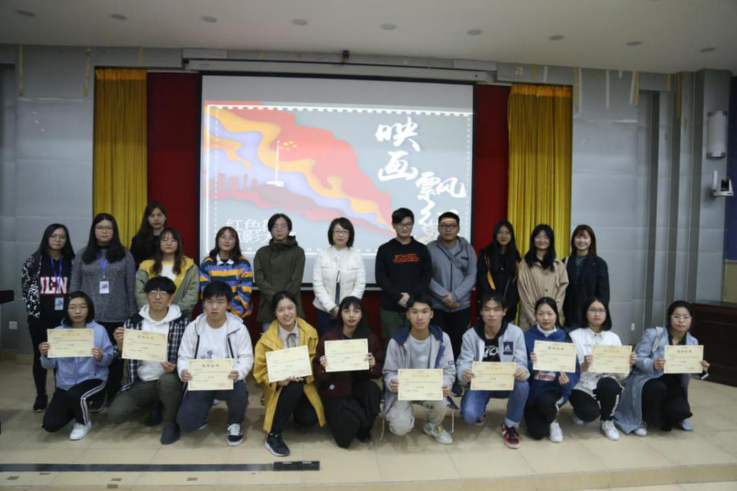 在观看完十部精彩的影片后,作为暖场又播放了去年获得微电影大赛一等奖的德语1802班作品《爱国者》,此时大赛接近尾声。随后,主持人宣布获奖名单,颁奖嘉宾和获奖者合影留念。至此,本次微电影大赛决赛圆满结束。