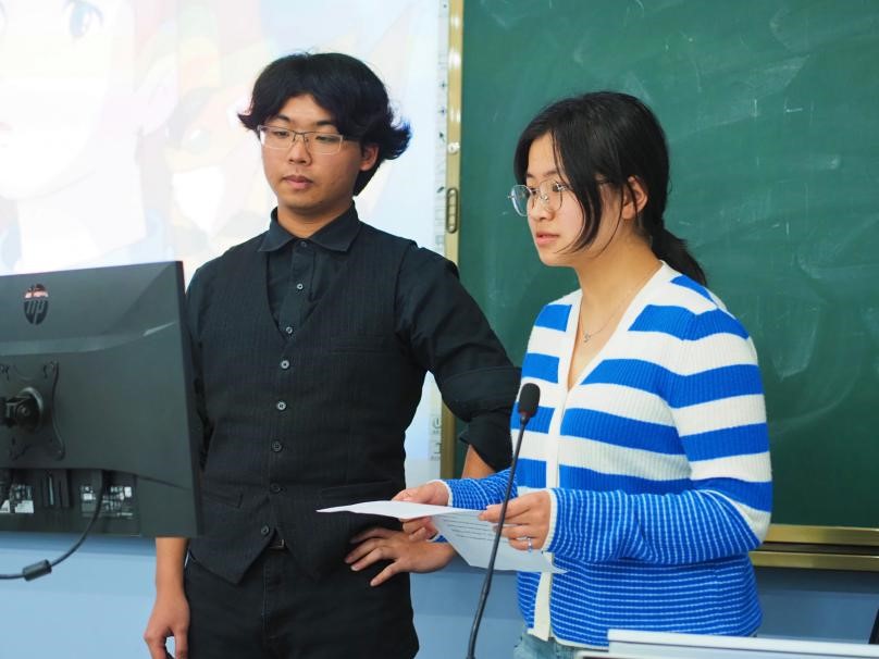 每支队伍选取的配音片段不尽相同,其中既有语调严肃、措辞讲究的科教节目,也有情节新颖、感情充沛的经典影视,可谓精彩纷呈。在配音表演过程中,来自不同队伍的同学们共同用默契的配合、娴熟的对话、生动的表演,引领着台下的观众仿佛置身于各式各样的实景,奉献了一场绝妙的视听盛宴。最终,德语2301班练丰仪、李嘉喻获得本次选拔赛一等奖,并将代表伟德国际betvlctor1946参加第六届全国本科生德语配音大赛。