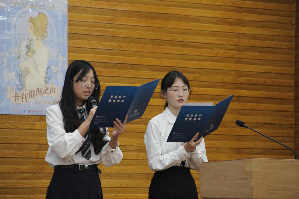 比赛现场,十三组参赛选手用九种语言为观众带来了一场听觉盛宴。朗诵作品中,有对生命的追问,有对人性的关怀,有对未来命运的哲思,亦有对世间苦难的同情,让同学们对生命与爱有了新的感悟和更深刻的理解。
