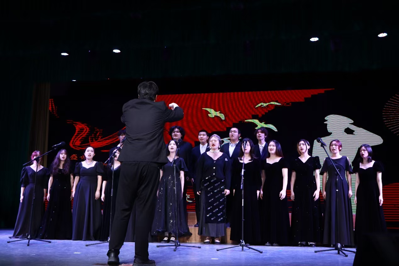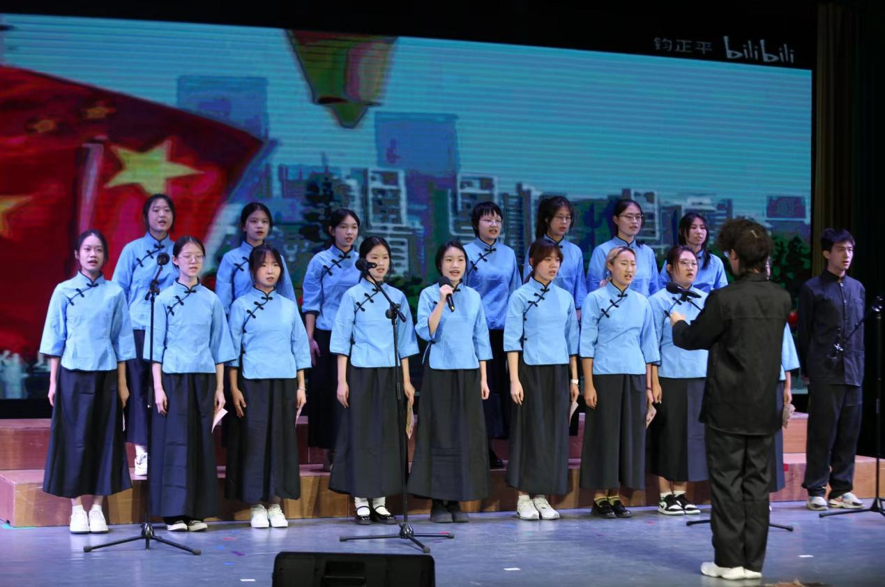 校合唱团献唱的《如愿》为大赛拉开了序幕。西语学子唱响了《如愿》《国家》《爱我中华》《灯火里的中国》《万疆》《有我》等一首首催人奋进的红色曲目,从新中国成立初期经典曲目,到歌颂新时代中国发展的新曲,一首首红歌承载着同学们的爱国热情,西语学子用歌声表达了对党、对国家的热爱,展现了新时代青年良好的精神风貌。
