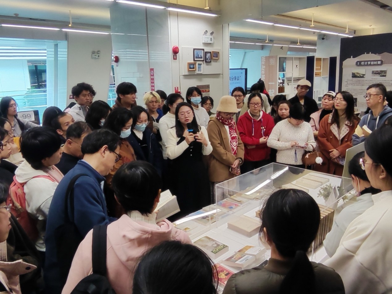 “悦读分享会”活动开始之前,梁玮琦老师为公众导赏了展览。之后俄语系24级口译专业研究生李思桐、21级本科生温柔带来了俄中双语朗诵契诃夫戏剧《三姐妹》片段的精彩表演,丰富了读者观展体验。