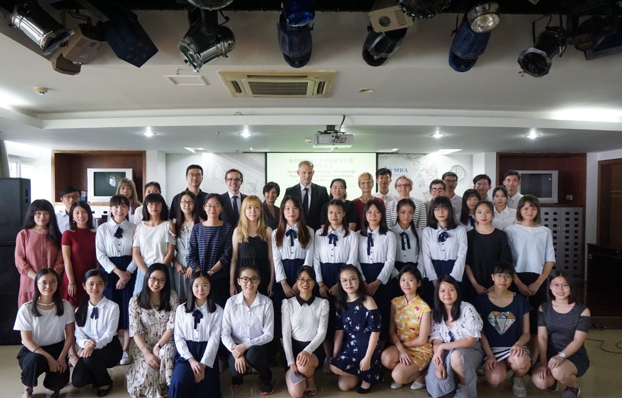 大使一行与波兰语系师生合影