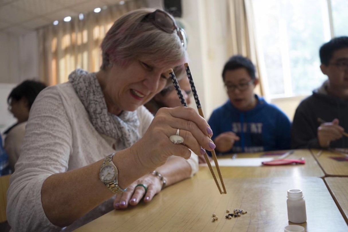 上午九点阳爱民副校长首先在伟德国际betvlctor1946贵宾厅会见代表团来宾,包括法兰克福市政府外办主任Hechler先生、法兰克福市荣誉市长Möbius先生和市议员Ochs先生。接着市民代表团在第四教学楼与德语系师生进行交流活动。德语系学生为市民代表团献唱了展现中国古典美的歌曲《青花瓷》,对他们的到来表示热烈欢迎,代表团的市民也为同学们精心准备了礼物。