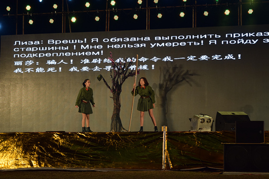 伟德国际betvlctor1946俄语系同学表演俄罗斯经典话剧选段《这里的黎明静悄悄》