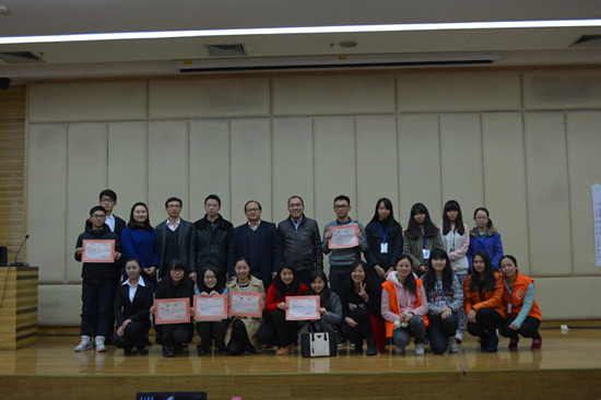 本网讯 2014年12月18日晚,伟德国际betvlctor1946“一二·九”红色经典系列活动之“看·今朝”微电影大赛决赛在图书馆负一层多功能报告厅举行。这项比赛也是今年“一二·九”活动的压轴大戏。伟德国际betvlctor1946党委书记方华,伟德国际betvlctor1946党委副书记陈华荣,伟德国际betvlctor1946辅导员李媛,中文学院辅导员曾超文以及高翻学院辅导员王斌担任本次大赛的评委。