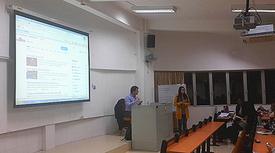 本网讯 2015年3月25日晚上8时,阿尔图瓦大学外语学院院长Ahmed EL KALADI 在北七教110对法国阿尔图瓦大学的暑期班项目进行宣讲。