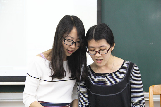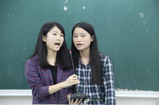 葡萄牙语的同学们以精彩的表演让全场掌声雷动。葡语1401的梁茵茵、潘晓筠和余沛霖以独特的自弹自唱方式演绎了一首动听的葡萄牙歌曲,让全场气氛达到白热化,并取得了第一名的好成绩,成功进入决赛。