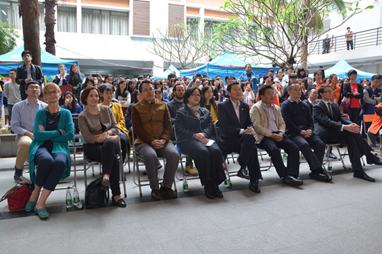 本网讯 2015年4月9日下午,2015年第九届欧罗巴文化节开幕式在六教中庭隆重展开。阴霾的天气和大家如火的热情形成了鲜明的对比,大家都迫切期待着开幕式的到来。