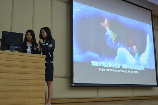 本次决赛共有来自不同语系的16支队伍参加。各支队伍都经过精心准备与练习,流利生动的配音仿佛将我们带入了原声带电影中。影片种类丰富多样,有《千与千寻》《冰雪奇缘》、苏联版《小熊维尼》等卡通电影,也有《浮华饭店》《闺蜜》《两个人的车站》《小淘气尼古拉》等等经典小语种佳片。德语系“健健美”队为风靡全球的德国电视剧《屌丝女士》配音,饱满的情感和夸张而精彩的剧情相得益彰;西班牙语系“VOLVEMOS”队伍带来的动画片《蜡笔小新》中的小新,男生将女生模仿得惟妙惟肖,赢得观众欢呼;法语系“MAD-L”队伍带来作品《小淘气尼古拉》片段,配音者们倾情演绎电影中淘气的孩纸们,使现场观众捧腹大笑。比赛中间还穿插有抽奖活动,现场气氛十分活跃。