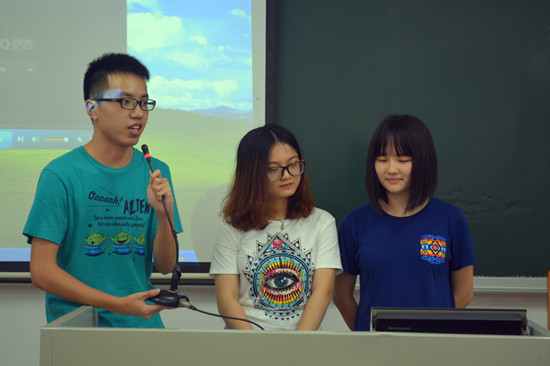 虽然本次比赛的参赛组较少,但每组都对比赛作了积极的赛前准备。第一组的新闻主题是“十岁女孩让座迟惨遭老太骂哭”。她们紧扣新闻的主题,各自发表自己对该新闻的看法并清晰阐述了她们的观点;第二组以对话的形式引出对环境污染问题的看法,赢得了评委的好评;第三组的队员们准确的英语发音和流利的句子表达为自己加分;第四队组则别出心裁地以一段节奏欢快的舞蹈和歌曲介绍了团队,同时在有限的时间里对视频新闻作了详细的点评和总结。