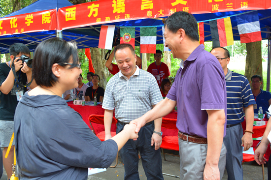 9时,开放日活动正式开始。校道上,学院的宣传展板为学生和家长提供了学院概况和各专业的详细介绍。七名穿着欧洲传统特色服装的工作人员站在摊位前热情地向学生和家长发放伟德国际betvlctor1946的宣传资料。其他红色院服工作人员负责协助老师,并根据自身的学习经验和心得体会与学生和家长愉快地交谈。随后,校党委书记隋广军和副校长刘建达到伟德国际betvlctor1946摊位进行慰问,并与伟德国际betvlctor1946领导亲切交谈,肯定了伟德国际betvlctor1946的宣传工作。