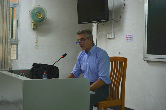 本网讯 929日下午三点,由Ventrone教授主讲的意大利语系专题讲座于二教114准时开始,出席本次讲座的有意大利语系的张海虹老师和高翔老师,以及意大利语系大二、大三和大四的学生。