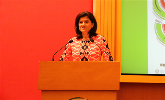 随后,艾古丽女士代表意大利驻广州总领馆上台致辞。讲话中,艾古丽女士对方凡泉副校长的热情接待表示衷心的感谢。她还指出,此次活动围绕音乐展开,对年轻人更具吸引力。开幕式在观众们热烈的掌声中圆满结束。