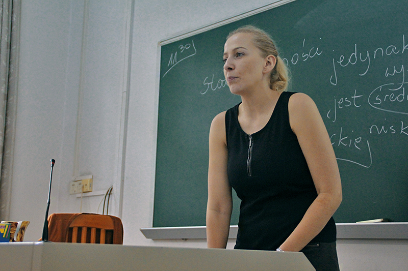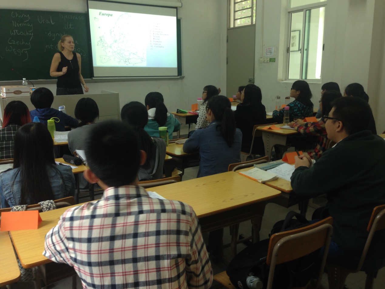 卡罗丽娜女士为2014级波兰语学生举办讲座中