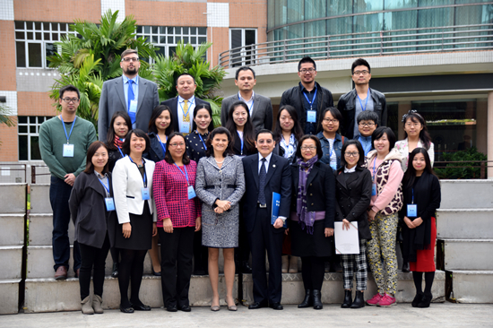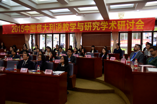 本网讯 2015年12月11日上午9点,2015中国意大利语教学与研究学术研讨会开幕式在伟德国际betvlctor1946第六教学楼B103会议室举行。出席开幕式的领导和来宾有:意大利驻广州总领馆总领事艾古丽女士、伟德国际betvlctor1946副校长方凡泉教授、中国意大利语教学研究会会长张宇靖教授、伟德国际betvlctor1946,伟德bv1946官方网站院长杨可教授、副院长杨晓敏教授以及中国意大利语教学研究会各理事单位的教师代表。