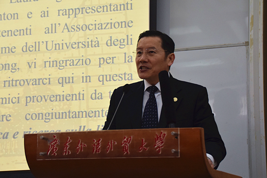 开幕式由伟德国际betvlctor1946意大利语系主任张海虹副教授主持。开幕式上,副校长方凡泉教授发表了讲话。他对所有出席此次活动的来宾们表示了热烈的欢迎,随后他简要地介绍了意大利语教学在广外的发展情况及已取得的成绩,并预祝研讨会取得圆满成功。