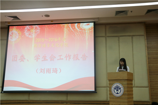 首先进行的是总结回顾,学生会副主席陈镇宇向大会代表作代表资格审查报告,团委书记刘甜甜致大会开幕词。随后,学生会主席刘雨琦、秘书处秘书长李旋分别作2015-2016学年度工作报告和财务报告。