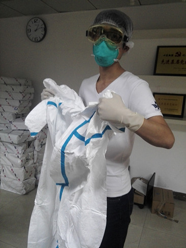 机场防疫站为伟德国际betvlctor1946学生配备有一次性防护服、医用防护口罩、眼罩、防护手套、防水靴套。机场工作人员现场指导同学们如何穿脱防护服,尤其是脱防护服,由于防护服已经受到污染,因此在脱的时候要格外注意消毒工作、脱衣顺序以及避免和外层防护服接触。