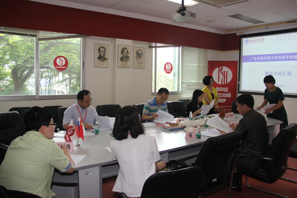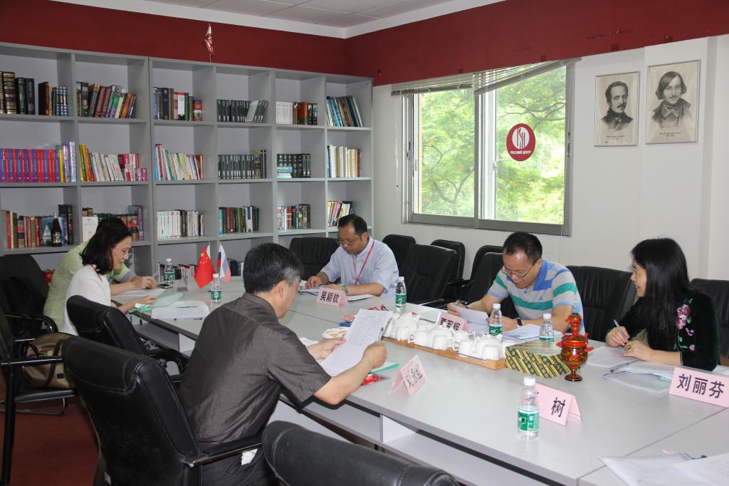 本网讯 俄语专业评估在2016年5月17日进行。参与本次评估工作的专家共五名,其中两名学科专家,一名教学管理专家,一名行业专家,以及一名校友代表。当天上午,专家们首先听取了俄语专业负责人的情况汇报,然后走访了实验室,并到教室听课;下午,五位专家分别访谈了五位老师和十位同学,并审阅部分教学档案,主要审阅了近三年的毕业论文和试卷,最后,就俄语专业的情况形成了评估意见,与学院领导及俄语专业负责人进行了沟通。