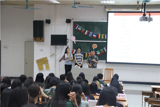 七点左右,西语团学宣传部、体育部和实践部开始进行布场工作,在教室里装饰上具有浓厚伟德国际betvlctor1946特色的各国国旗和建筑物贴画。九点十分,王斌龙辅导员、团学各部长以及班导悉数到齐,全体大一新生入座完毕后,庆生大会正式开始。