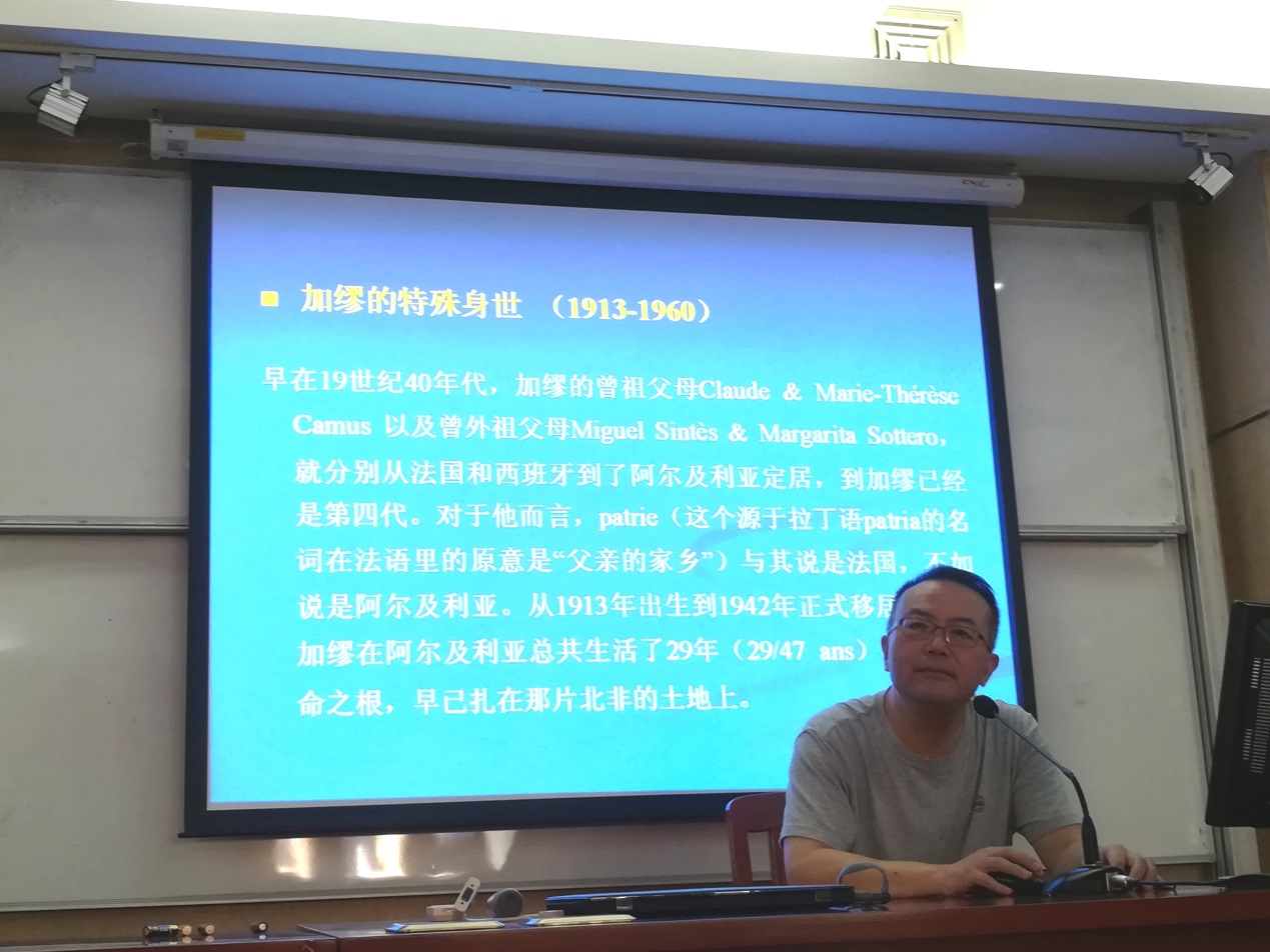 黄晞耘教授是在伟德国际betvlctor1946研究生院“名师讲坛”项目下,由伟德国际betvlctor1946法语系张弛教授邀请,作为硕士研究生课程“法国文学”的外聘教师,在存在主义文学专题下,对加缪的创作进行了角度独特、思路新颖、阐释独到的分析。