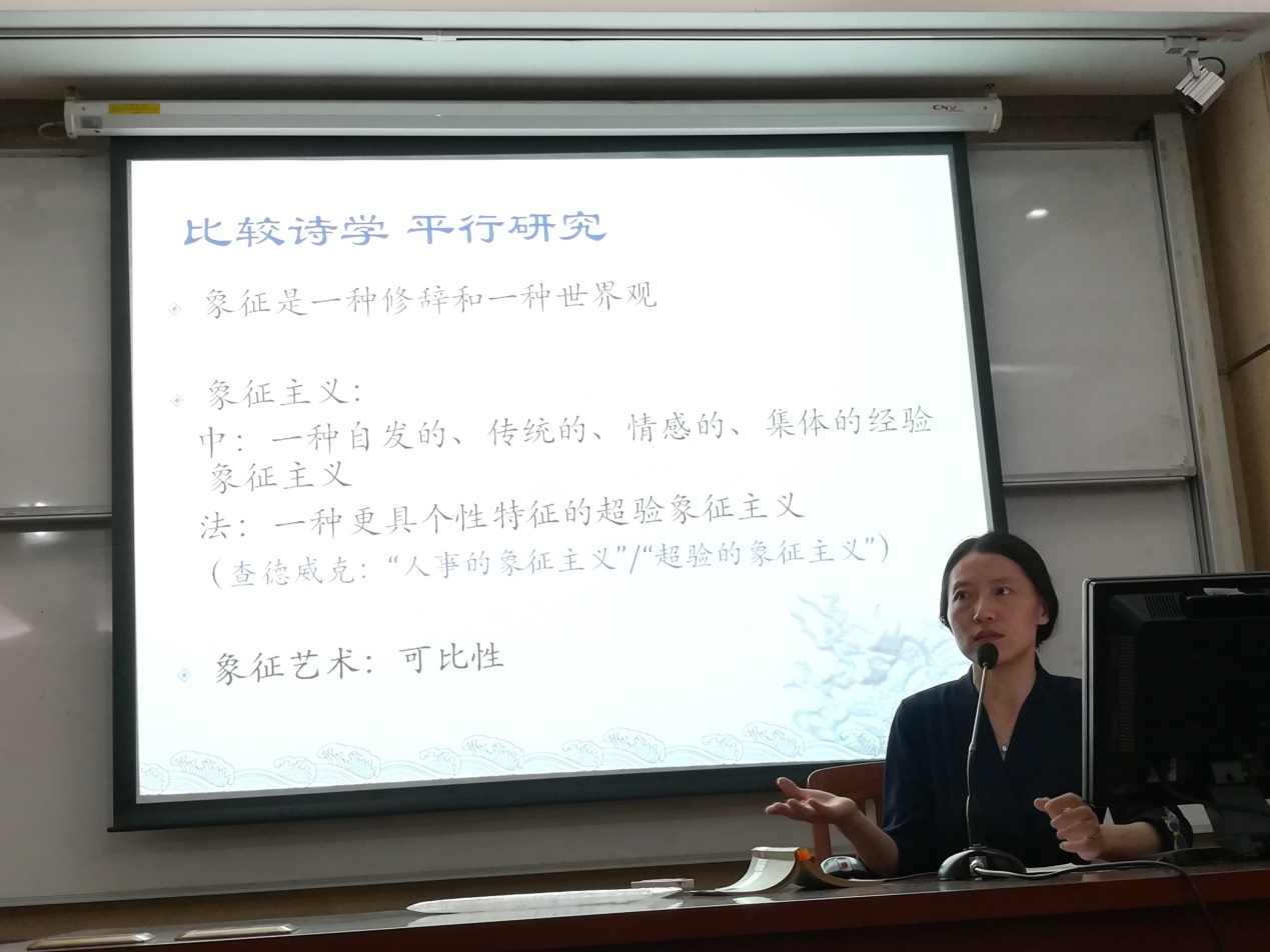 车琳教授是在伟德国际betvlctor1946研究生院“名师讲坛”项目下,由伟德国际betvlctor1946法语系张弛教授邀请,作为硕士研究生课程“法国文学”的外聘教师,在象征主义文学专题下,对法国象征主义诗歌的修辞进行了梳理、概括和分析,以使听众更加容易把握象征主义诗歌的创作特征与诗歌特色。