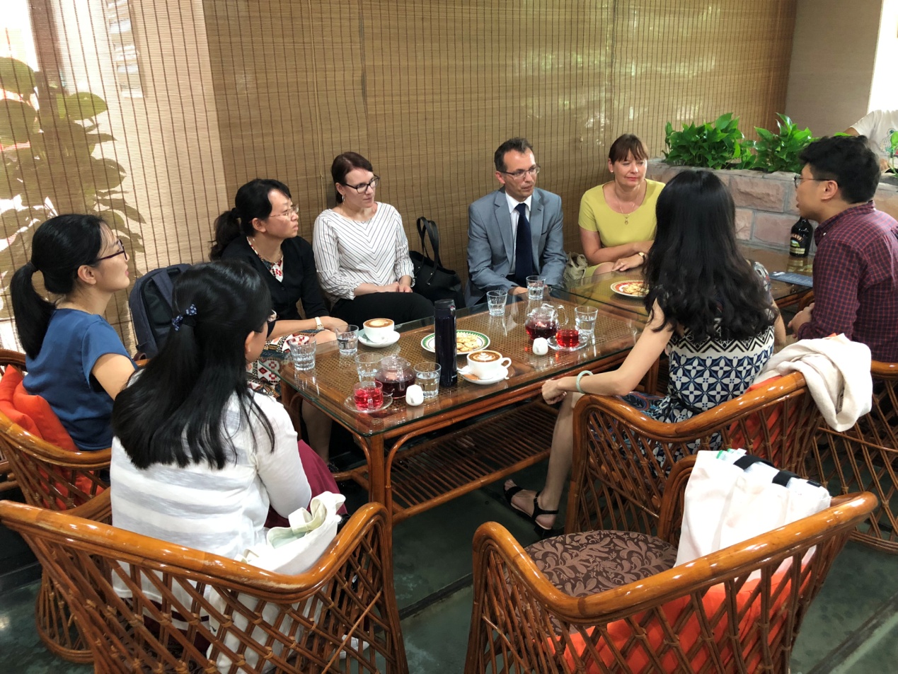 本网讯 2018年6月7日下午两点,伟德国际betvlctor1946德语系创新团队全体成员及外教与前来伟德国际betvlctor1946进行学术访问的波兰什切青大学日耳曼学院教授举行学术交流座谈会。