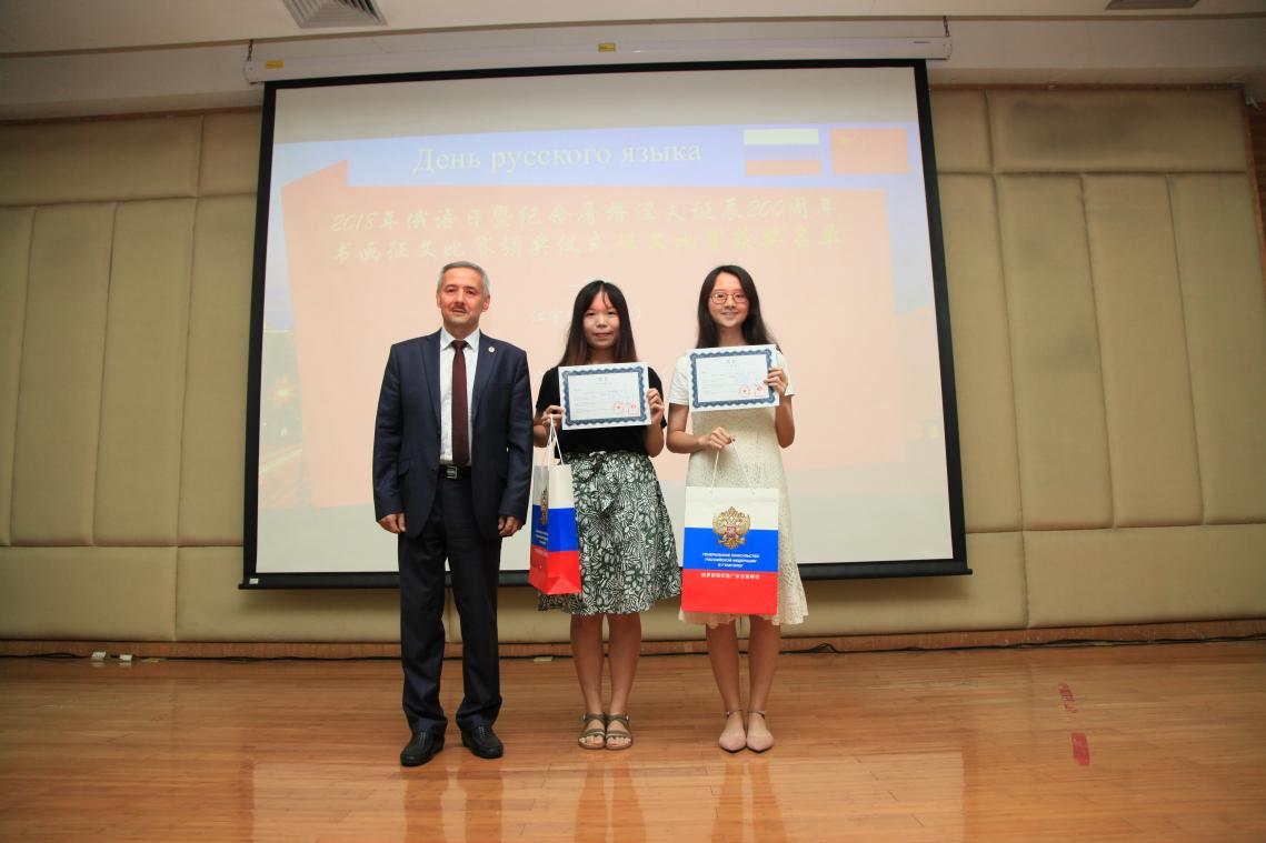 紧接着是激动人心的颁奖仪式。本次大赛收到来自华南地区各高校俄语系学生和中学生的多份征文和书画作品,才华横溢的参赛者们各展其才,通过多种形式表达对俄语的热爱。最终,伟德国际betvlctor1946俄语系江宇红同学斩获征文比赛一等奖并赢得俄罗斯旅游大奖。